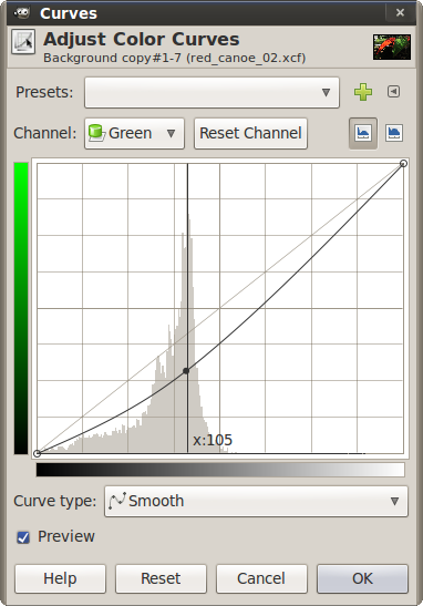 linje med tallet 105. Det betyder, at den grønne kanal optræder med