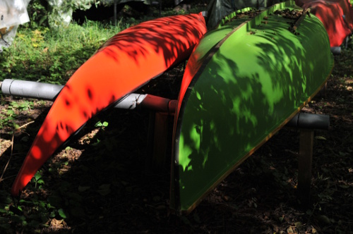 end den mere orange tone, der ses, hvor solen skinner klart på kanoen.