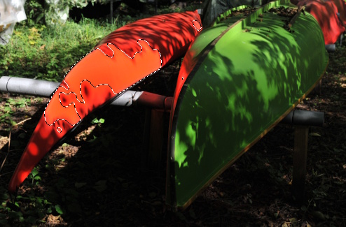 fejlfarvede område på den røde kano; resten af billedet er jo godt nok.